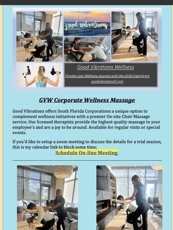 GVW's network of massage therapists have extensive experience and come equipped to provide traditional massage therapy and/or percussive treatment utilizing Theragun.